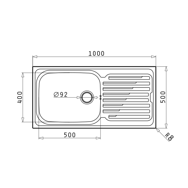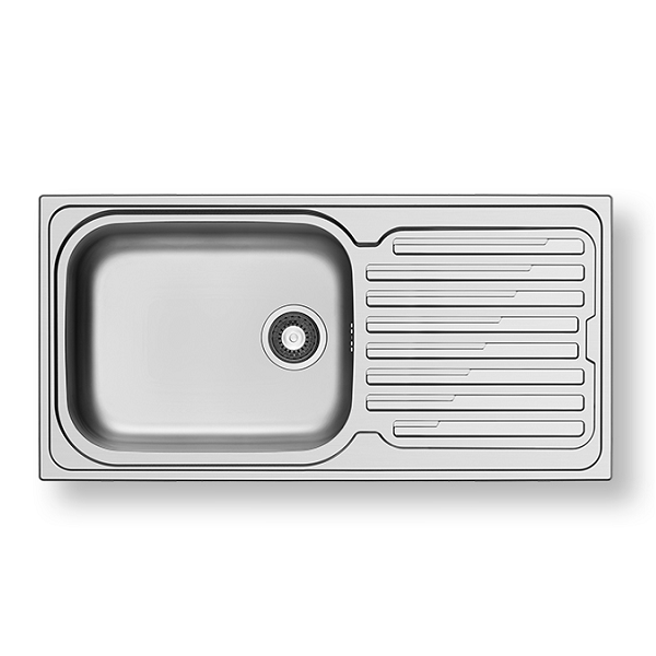 Ανοξείδωτος νεροχύτης Pyramis διαστάσεων 100x50cm της σειράς Amaltia Plus, σε γυαλισμένο φινίρισμα από άριστης ποιότητας ατσάλι (CrNi 18/10), τύπου AISI 304, με μία γούρνα και ποδιά για ένθετη (easyfix) εγκατάσταση.