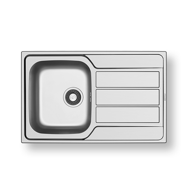 Ανοξείδωτος νεροχύτης Pyramis διαστάσεων 79x50cm της σειράς Athena, σε σατινέ φινίρισμα από άριστης ποιότητας ατσάλι (CrNi 18/10), τύπου AISI 304, με μία γούρνα και ποδιά για ένθετη (easyfix) εγκατάσταση.