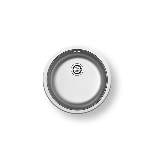 Ανοξείδωτος νεροχύτης Pyramis CR διαμέτρου Φ45, σε γυαλισμένο φινίρισμα με μία γούρνα και ένθετη (easyfix) εγκατάσταση.