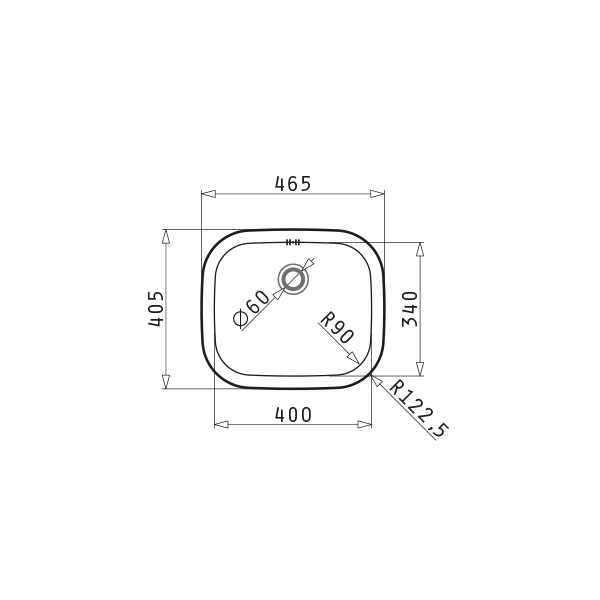 Ανοξείδωτος νεροχύτης Pyramis Kiba Square διαστάσεων 46.5×40.5cm, σε γυαλισμένο φινίρισμα με μία γούρνα και ένθετη (easyfix) εγκατάσταση.