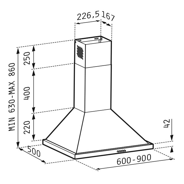 Απορροφητήρας 60cm Pyramis Ecoline Καμινάδα Τετράγωνη Τοίχου.