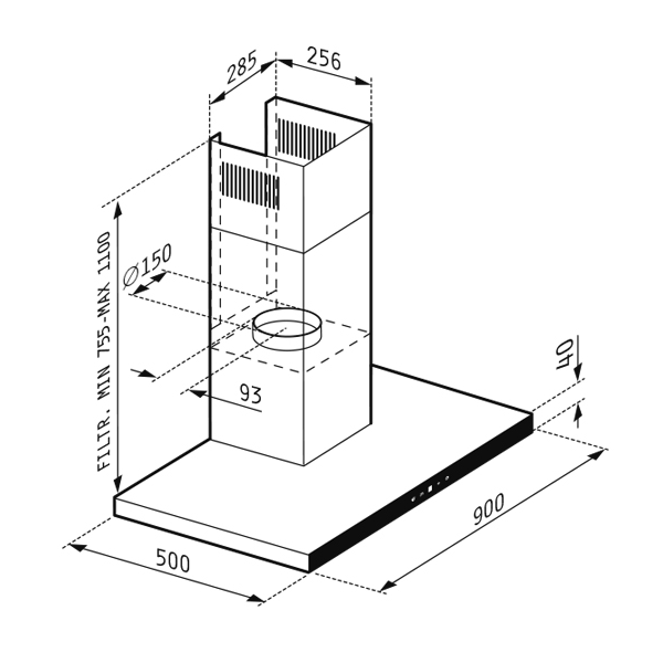 Απορροφητήρας 90cm Pyramis Grandezzo τοίχου.