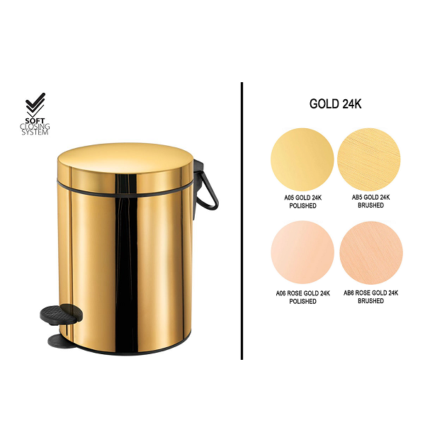 Χαρτοδοχείο 5lt με καπάκι soft-close, σε διάφορες επιχρυσώσεις 24Κ, διαστάσεων:
