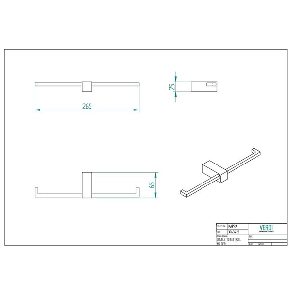 Διπλή Χαρτοθήκη Kappa σε χρώμιο, διαστάσεων: