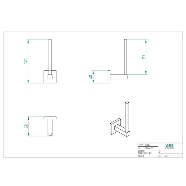 Εφεδρική Χαρτοθήκη Cube σε χρώμιο