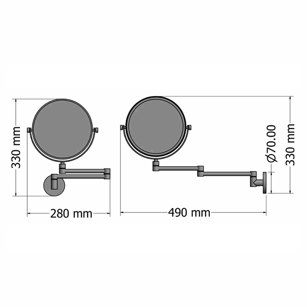 Επιτοίχιος μεγενθυτικός καθρέπτης 2 όψεων x5 με διπλό βραχίονα σε χρώμιο, διαστάσεων:
