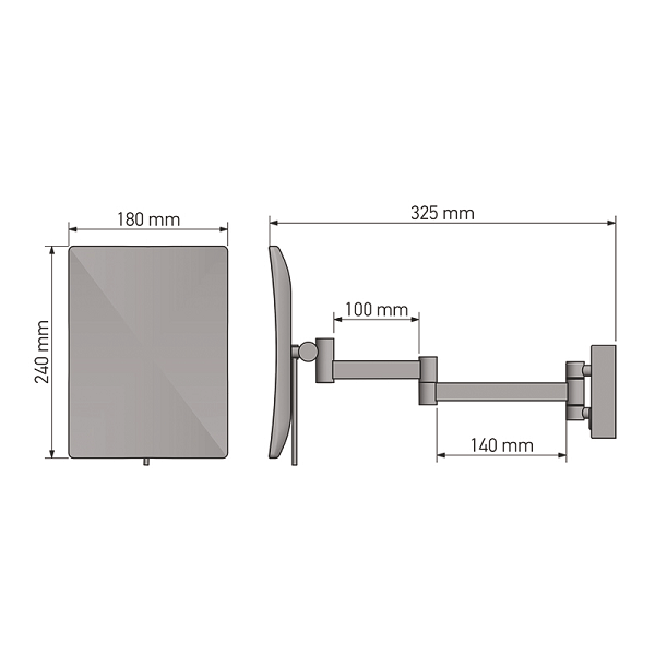 Επιτοίχιος μεγενθυτικός καθρέπτης x3 με διπλό βραχίονα και LED φωτισμό σε χρώμιο, διαστάσεων: