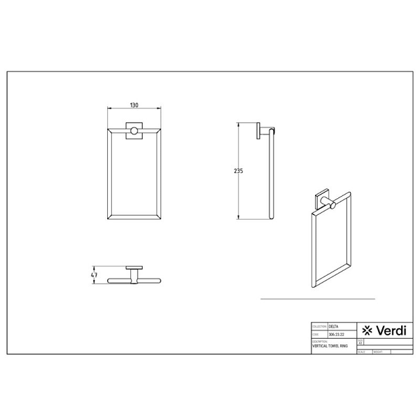 Κρίκος Delta κάθετος σε χρώμιο, διαστάσεων: