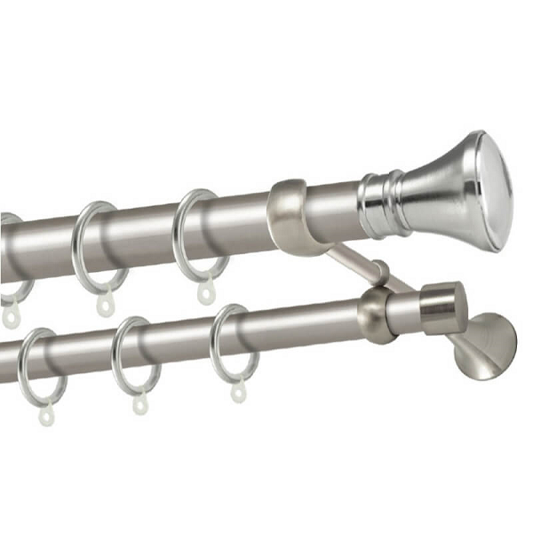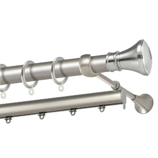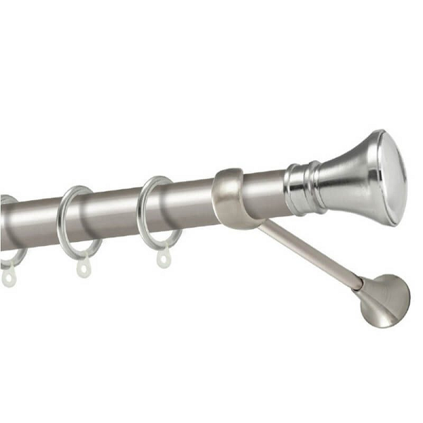 Μεταλλική κουρτινόβεργα Χάλκη οικονομικής σειράς της εταιρείας Perfect, χρώματος Ματ Νίκελ/Χρώμιο, σε μονή βέργα, διπλή βέργα ή διπλή με σιδηρόδρομο σε διάφορες διαστάσεις. Η διάμετρος της βέργας είναι Ø25mm και περιλαμβάνει έως 3 στηρίγματα ανάλογα με την διάσταση.