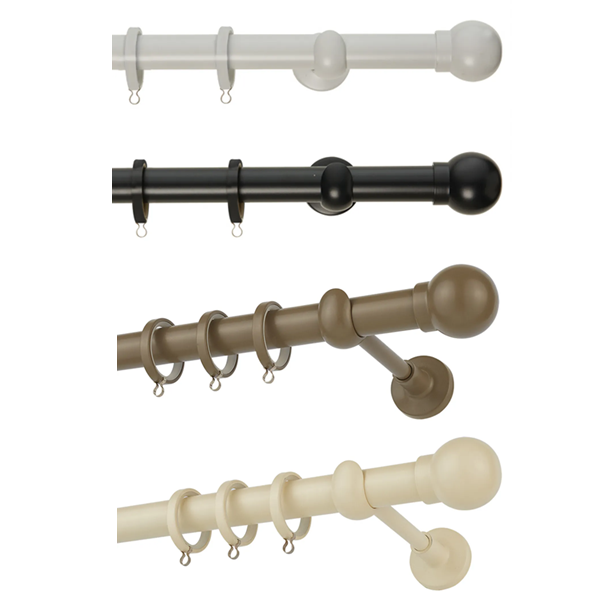 Μεταλλική κουρτινόβεργα Zogometal της σειράς ColorMore σε μονή βέργα, διπλή βέργα ή διπλή με σιδηρόδρομο σε διάφορες διαστάσεις. Η διάμετρος της βέργας είναι Ø25mm και περιλαμβάνει έως 3 στηρίγματα ανάλογα με την διάσταση.