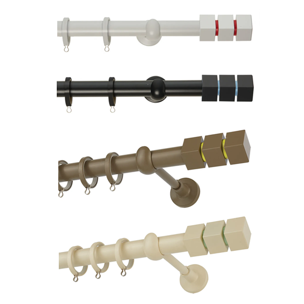 Μεταλλική κουρτινόβεργα Zogometal της σειράς ColorMore σε μονή βέργα, διπλή βέργα ή διπλή με σιδηρόδρομο σε διάφορες διαστάσεις. Η διάμετρος της βέργας είναι Ø25mm και περιλαμβάνει έως 3 στηρίγματα ανάλογα με την διάσταση.