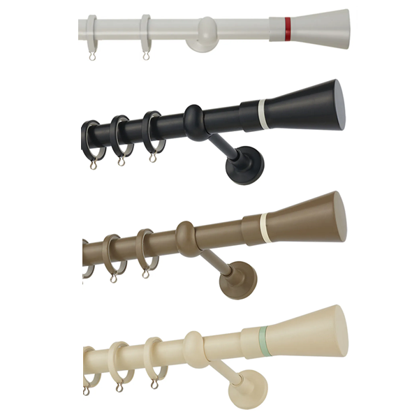 Μεταλλική κουρτινόβεργα Zogometal της σειράς ColorMore σε μονή βέργα, διπλή βέργα ή διπλή με σιδηρόδρομο σε διάφορες διαστάσεις. Η διάμετρος της βέργας είναι Ø25mm και περιλαμβάνει έως 3 στηρίγματα ανάλογα με την διάσταση.