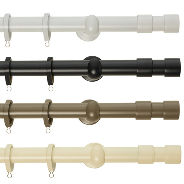 Μεταλλική κουρτινόβεργα Zogometal της σειράς ColorMore σε μονή βέργα, διπλή βέργα ή διπλή με σιδηρόδρομο σε διάφορες διαστάσεις. Η διάμετρος της βέργας είναι Ø25mm και περιλαμβάνει έως 3 στηρίγματα ανάλογα με την διάσταση.