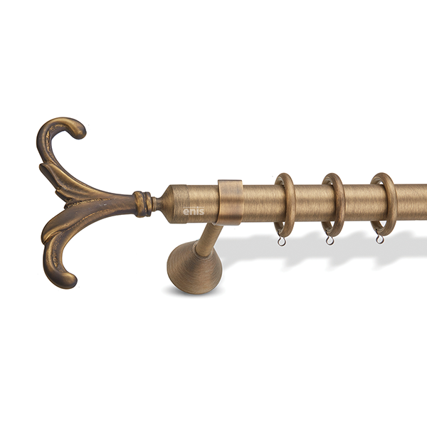 Μεταλλική ανοξείδωτη κουρτινόβεργα Enis Δίας σε μονή βέργα διαφόρων διαστάσεων. Η διάμετρος της βέργας είναι Ø35mm και περιλαμβάνει έως 3 στηρίγματα ανάλογα με την διάσταση.