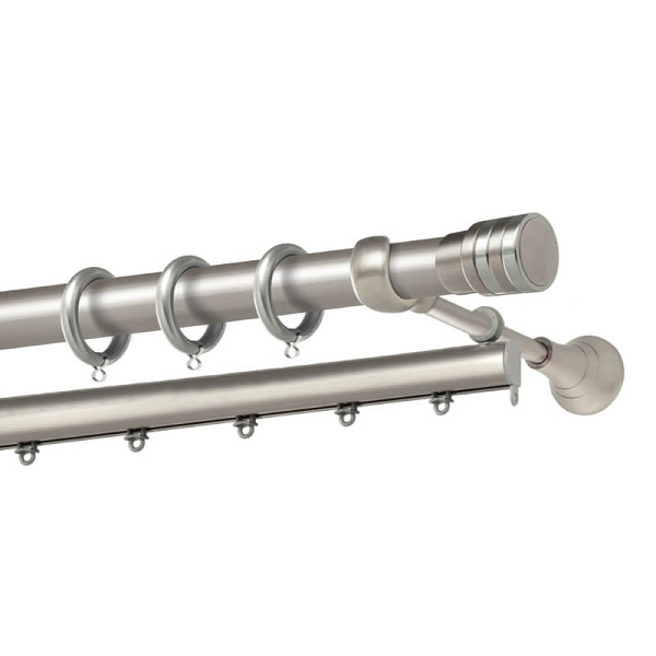 Μεταλλική κουρτινόβεργα Ελαφόνησος της εταιρείας Perfect, χρώματος Ματ Νίκελ/Χρώμιο ή Μαύρο/Χαλκός, σε μονή βέργα, διπλή βέργα ή διπλή με σιδηρόδρομο σε διάφορες διαστάσεις. Η διάμετρος της βέργας είναι Ø25mm και περιλαμβάνει έως 3 στηρίγματα ανάλογα με την διάσταση.
