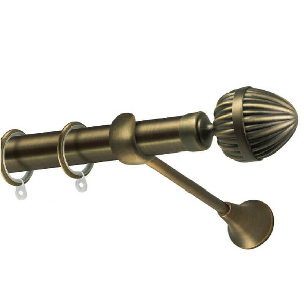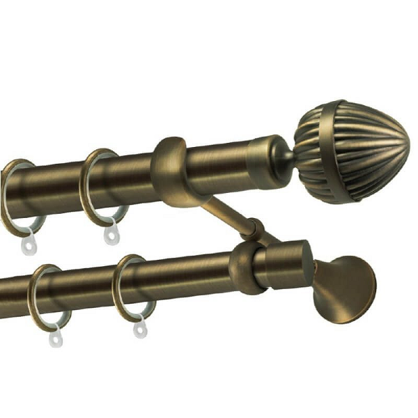 Μεταλλική κουρτινόβεργα Γαύδος οικονομικής σειράς της εταιρείας Perfect, χρώματος Μπρονζέ, σε μονή βέργα, διπλή βέργα ή διπλή με σιδηρόδρομο σε διάφορες διαστάσεις. Η διάμετρος της βέργας είναι Ø25mm και περιλαμβάνει έως 3 στηρίγματα ανάλογα με την διάσταση.