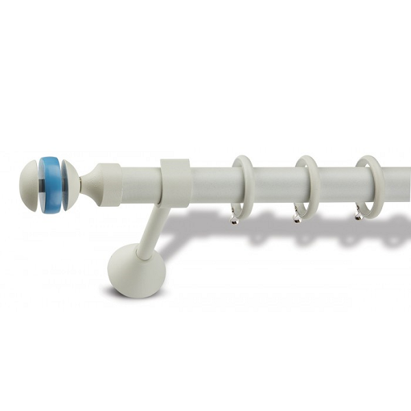 Μεταλλική κουρτινόβεργα Enis Ίρις Μπλε σε μονή βέργα, διπλή βέργα ή διπλή με σιδηρόδρομο σε διάφορες διαστάσεις. Η διάμετρος της βέργας είναι Ø25mm και περιλαμβάνει έως 3 στηρίγματα ανάλογα με την διάσταση.