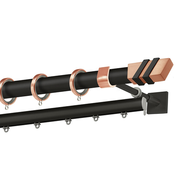 Μεταλλική κουρτινόβεργα Κρήτη της εταιρείας Perfect, χρώματος Ματ Νίκελ/Χρώμιο ή Μαύρο/Χαλκός, σε μονή βέργα, διπλή βέργα ή διπλή με σιδηρόδρομο σε διάφορες διαστάσεις. Η διάμετρος της βέργας είναι Ø25mm και περιλαμβάνει έως 3 στηρίγματα ανάλογα με την διάσταση.