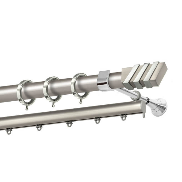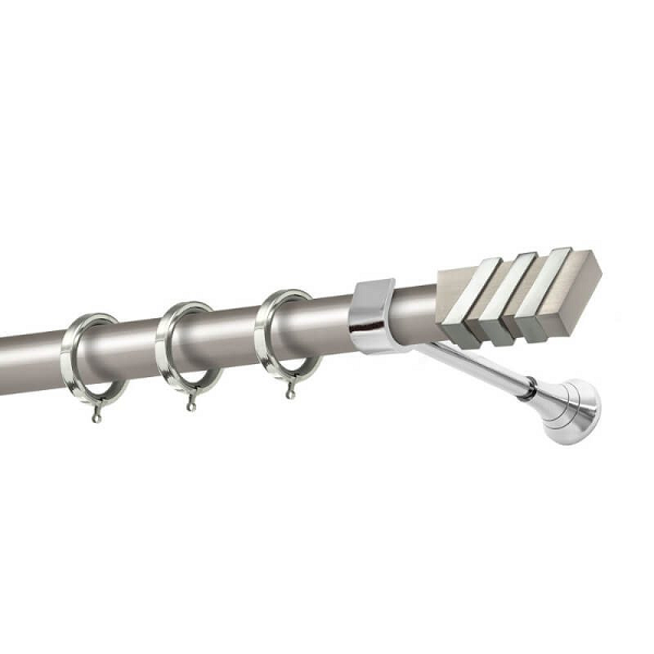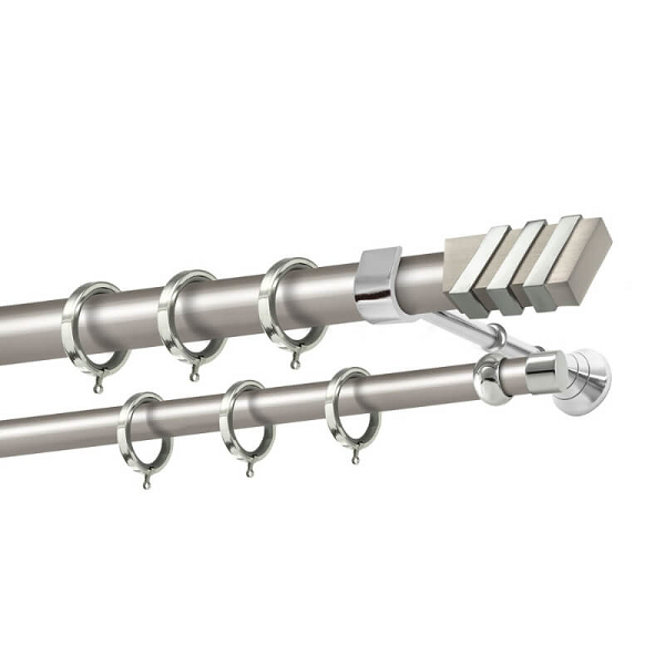 Μεταλλική κουρτινόβεργα Κρήτη της εταιρείας Perfect, χρώματος Ματ Νίκελ/Χρώμιο, σε μονή βέργα, διπλή βέργα ή διπλή με σιδηρόδρομο σε διάφορες διαστάσεις. Η διάμετρος της βέργας είναι Ø25mm και περιλαμβάνει έως 3 στηρίγματα ανάλογα με την διάσταση.