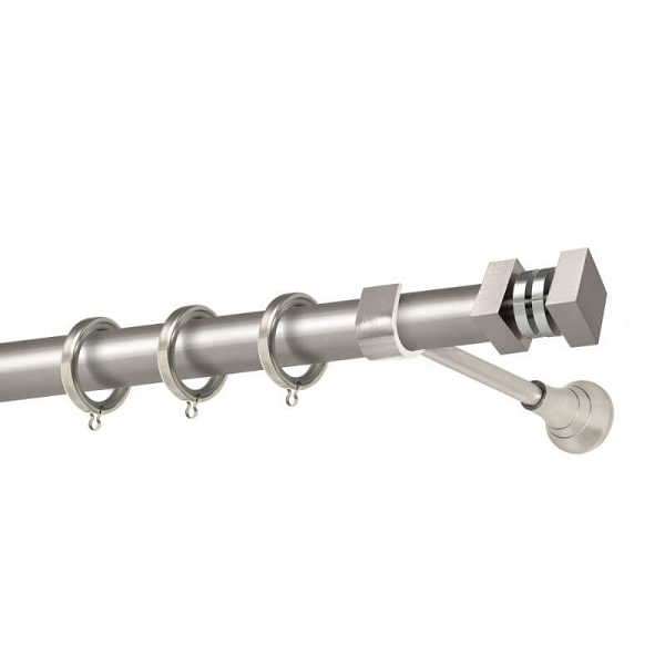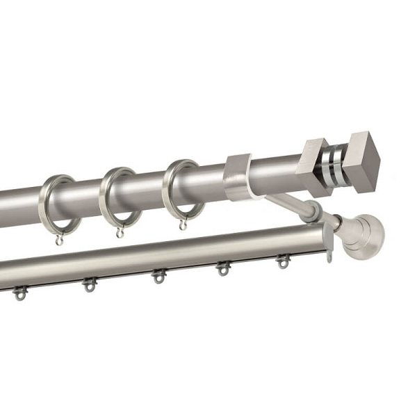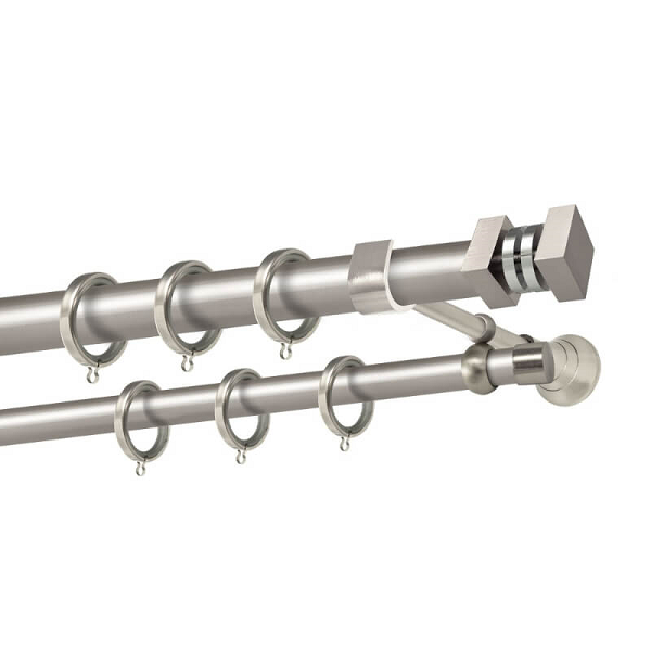 Μεταλλική κουρτινόβεργα Νάξος της εταιρείας Perfect, χρώματος Ματ Νίκελ/Χρώμιο, σε μονή βέργα, διπλή βέργα ή διπλή με σιδηρόδρομο σε διάφορες διαστάσεις. Η διάμετρος της βέργας είναι Ø25mm και περιλαμβάνει έως 3 στηρίγματα ανάλογα με την διάσταση.