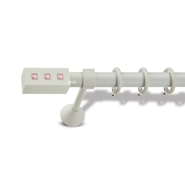 Μεταλλική κουρτινόβεργα Enis Ευρώτας σε μονή βέργα, διπλή βέργα ή διπλή με σιδηρόδρομο σε διάφορες διαστάσεις. Η διάμετρος της βέργας είναι Ø25mm και περιλαμβάνει έως 3 στηρίγματα ανάλογα με την διάσταση.