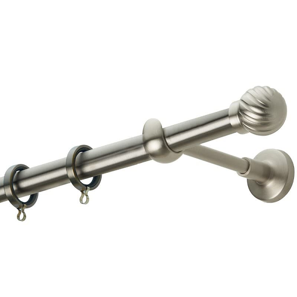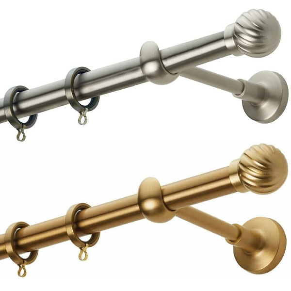 Μεταλλική κουρτινόβεργα Zogometal σε μονή βέργα, διπλή βέργα ή διπλή με σιδηρόδρομο σε διάφορες διαστάσεις. Η διάμετρος της βέργας είναι Ø20mm και περιλαμβάνει έως 3 στηρίγματα ανάλογα με την διάσταση.