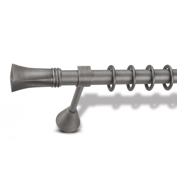 Μεταλλική βιομηχανική κουρτινόβεργα Enis Τήλος σε μονή βέργα ή διπλή με σιδηρόδρομο σε διάφορες διαστάσεις. Η διάμετρος της βέργας είναι Ø25mm και περιλαμβάνει έως 3 στηρίγματα ανάλογα με την διάσταση.