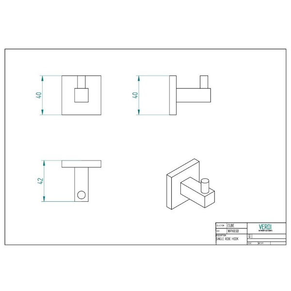 Μονό Άγκιστρο Cube σε χρώμιο, διαστάσεων: