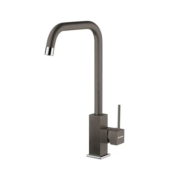 Αναμεικτική μπαταρία νεροχύτη κουζίνας Pyramis Adelita Pyragranite σε χρώμα iron grey, με κεραμικούς δίσκους