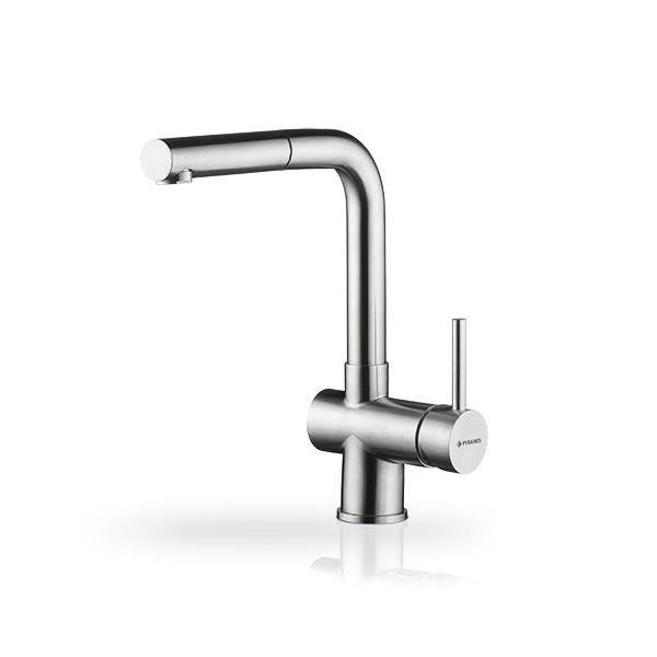 Αναμεικτική μπαταρία νεροχύτη κουζίνας Pyramis Capriccio ανοξείδωτη, με κεραμικούς δίσκους & εκτεινόμενο ντους