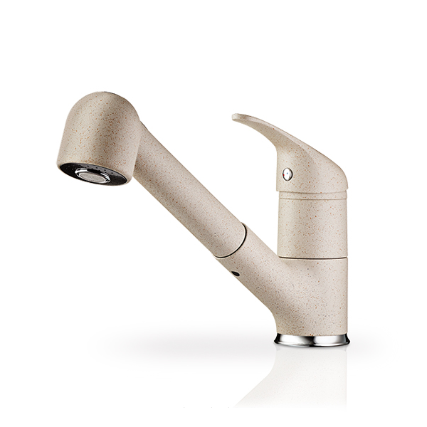 Αναμεικτική μπαταρία νεροχύτη κουζίνας Pyramis Festivo σε χρώμα dark beige, με κεραμικούς δίσκους & εκτεινόμενο ντους