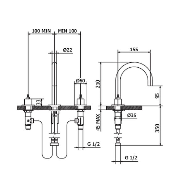 Μπαταρία νιπτήρος 3 οπών της σειράς Programe One