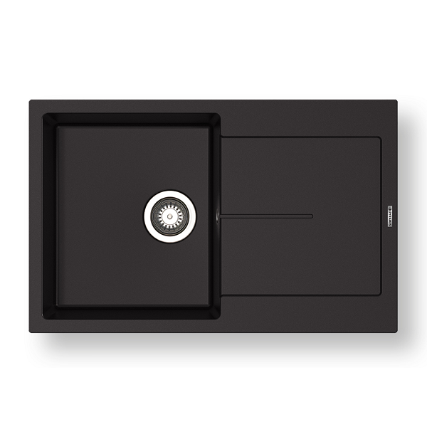 Νεροχύτης Pyramis Pyragranite Ithaka, διαστάσεων 79x50cm σε χρώμα volcano, κατασκευασμένος από υψηλής απόδοσης φυσικό χαλαζία, με μία γούρνα και ποδιά για ένθετη εγκατάσταση.