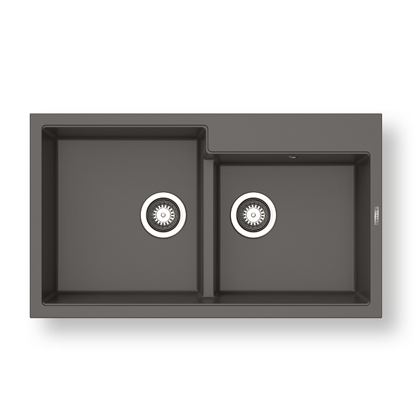 Νεροχύτης Pyramis Pyragranite Ithaka, διαστάσεων 86x50cm σε χρώμα iron grey, κατασκευασμένος από υψηλής απόδοσης φυσικό χαλαζία, με δύο γούρνες και ένθετη εγκατάσταση.