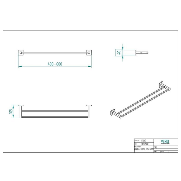 Πετσετοθήκη Διπλή Cube σε χρώμιο, διαφόρων διαστάσεων