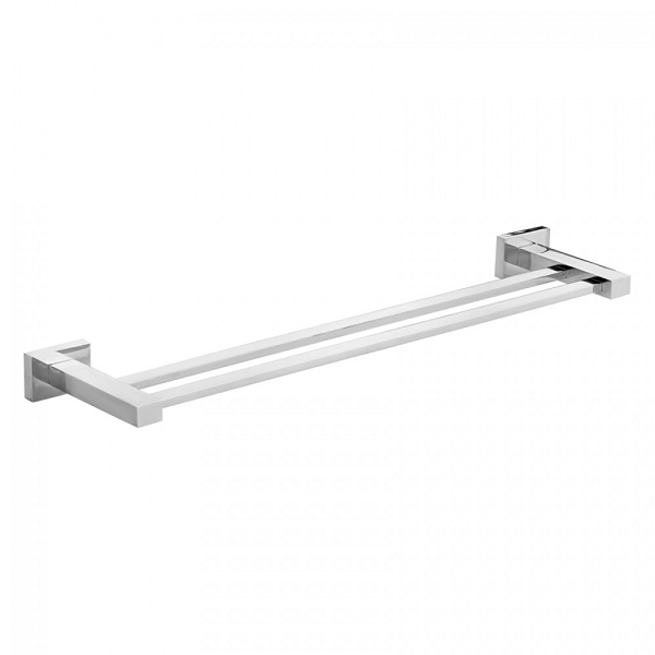 Πετσετοθήκη Διπλή Lugano Quadrato σε χρώμιο, διαστάσεων: