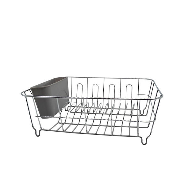 Πιατοθήκη γούρνας μεταλλική με σιλικόνη στο κάτω μέρος για μεγαλύτερη αντοχή και πλαστική ποτηροθήκη σε γκρι χρώμα.