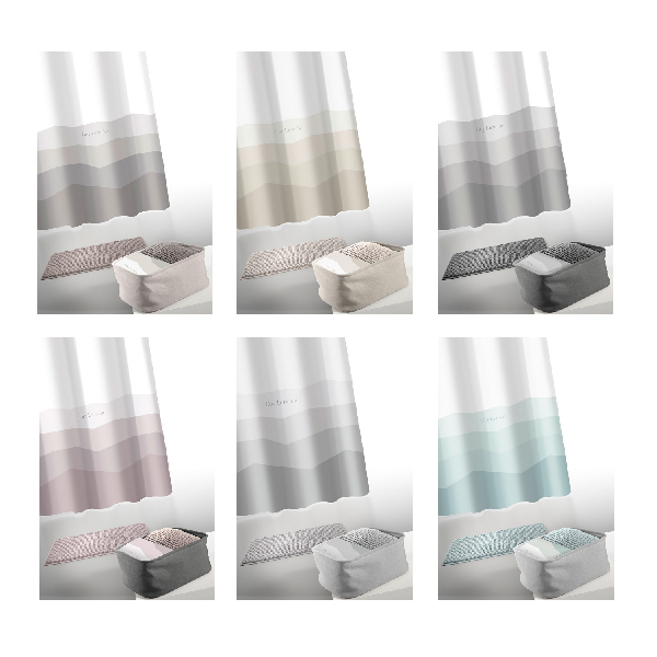 Σετ 4 τεμαχίων που αποτελούν κουρτίνα 100% αδιάβροχη από πολυεστέρα, διαστάσεων 180x180cm & σετ 12 κρίκων, πατάκι μπάνιου 100% βαμβακερό, διαστάσεων 40x60cm και καλάθι καλλυντικών της σειράς Blum σε διάφορα χρώματα.