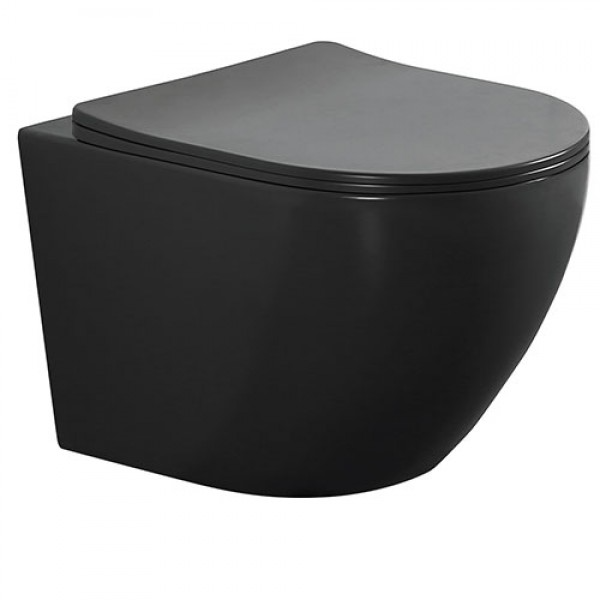 Σετ κρεμαστής λεκάνης rimless Black Matt 49cm της σειράς Vera.